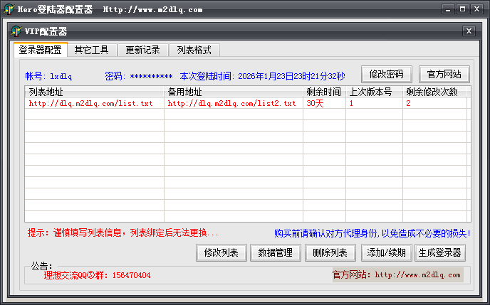 ↓↓登录器更新日志↓↓ 1.登陆器完美兼容windows全系列系统 2.修复某些系统打开提示需要微软支持库问题 3.登陆器分辨率从800*600 - 1920*1080 4.登陆器窗口化(32/16)真彩色支持 5.完美兼容HumEffect支持 6.修改快捷方式名称采用直接读取exe名称生成,免除重新配置登录器的烦恼! ----------------------------------------------- 更新:支持窗口注册账号、修改密码、找回密码等 修改:由于原先的列表模式为老板本的加密模式现在修改为明文模式列表,方便GM进行修改 ----------------------------------------------- 理想登陆器 - 3KM2系列